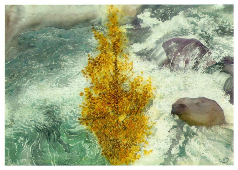 "Birkengold vor Schwarzach-Wasser", Aquarell