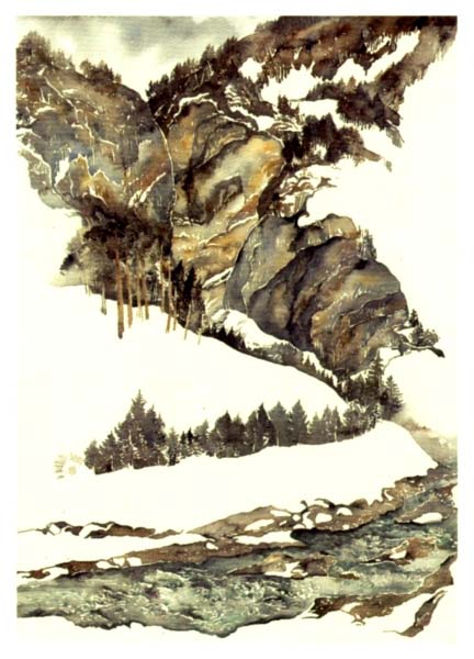 "Ein Neujahrsmorgen an der Drau", Aquarell