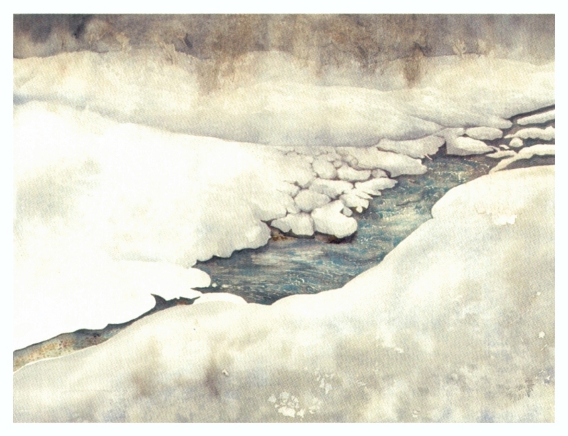 "Lebendiges Juwel - Rauhreif und Schnee", Aquarell