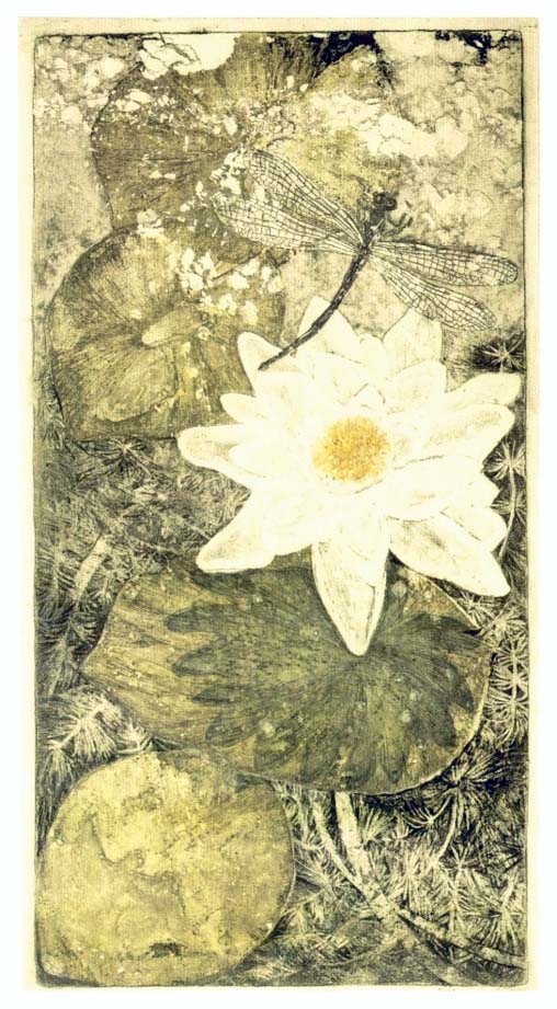 "Seerose und Libelle", Farbradierung